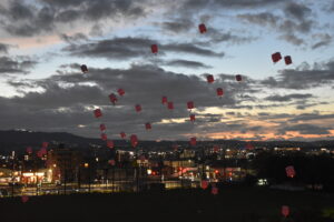 79回学園祭は友人も招待し、賑わいを取り戻したものとなりました。テーマは「灯源郷」。学校はユートピアの雰囲気に。グランドでは全校生徒で「灯」を表しました。(2023/9/16~17)